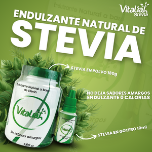 Endulzante natural de Stevia en polvo y gotero de Vitaliah.