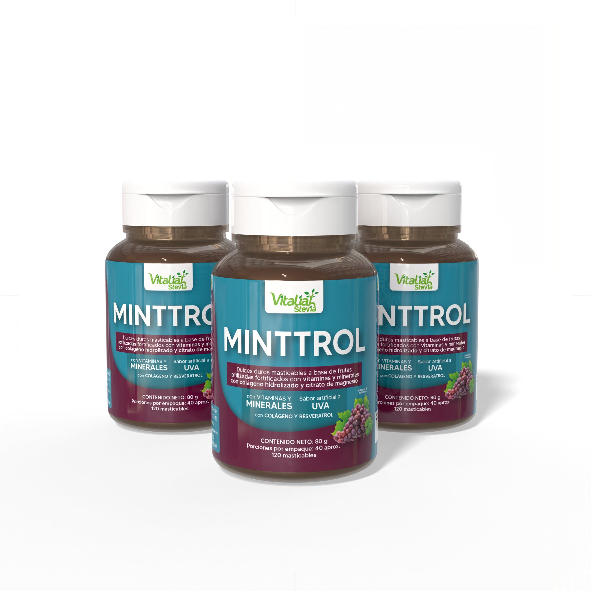 Frutas liofilizadas, menta, uva liofilizada, colágeno hidrolizado (100 mg por porción), resveratrol (50 mg por porción)