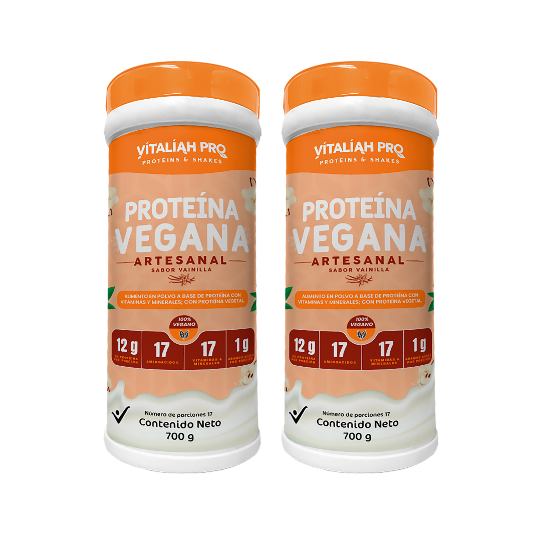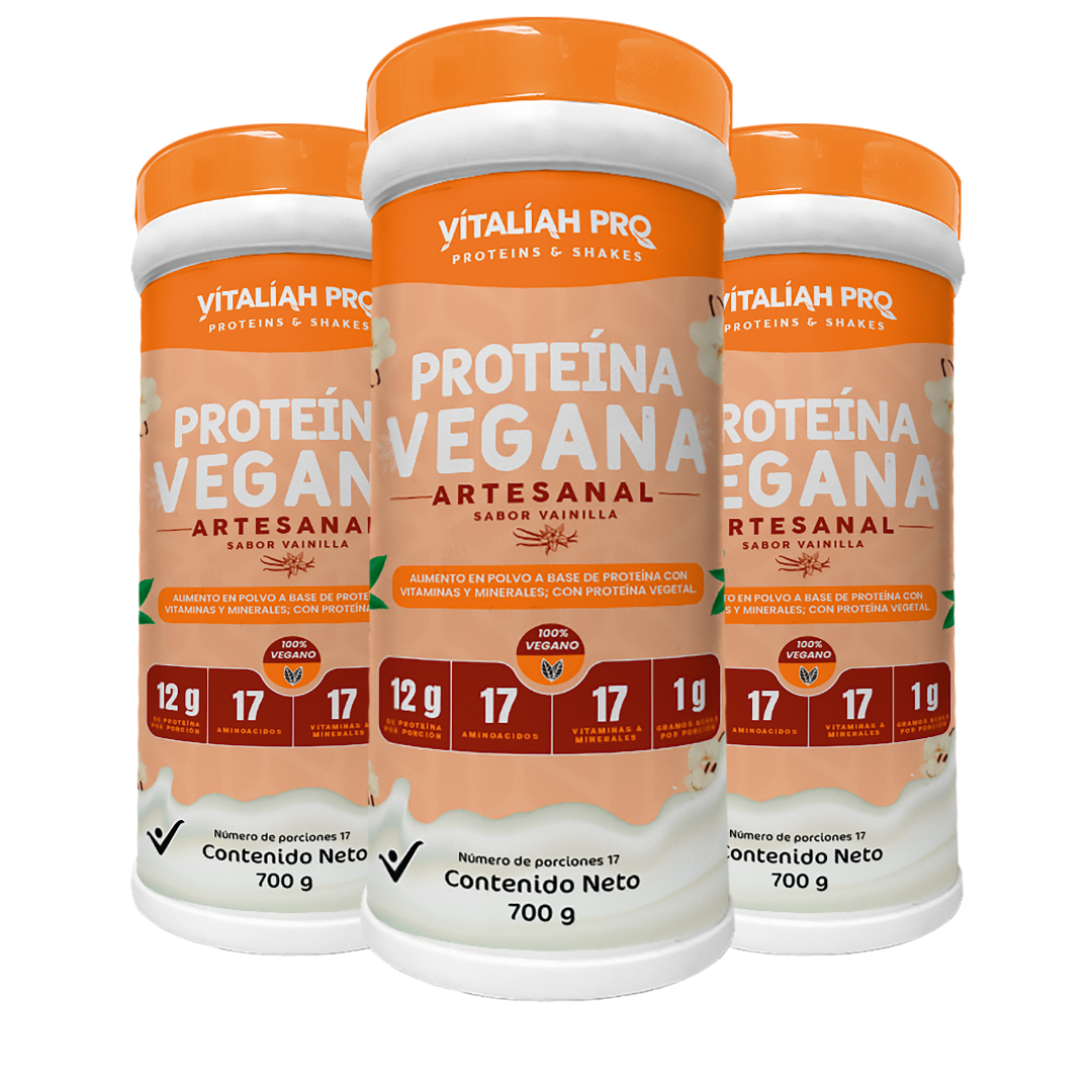 La proteína vegana artesanal de Vitaliah Pro se distingue por estar elaborada por Harina de Quinoa y Harina de Garbanzo y estar endulzada con Stevia.