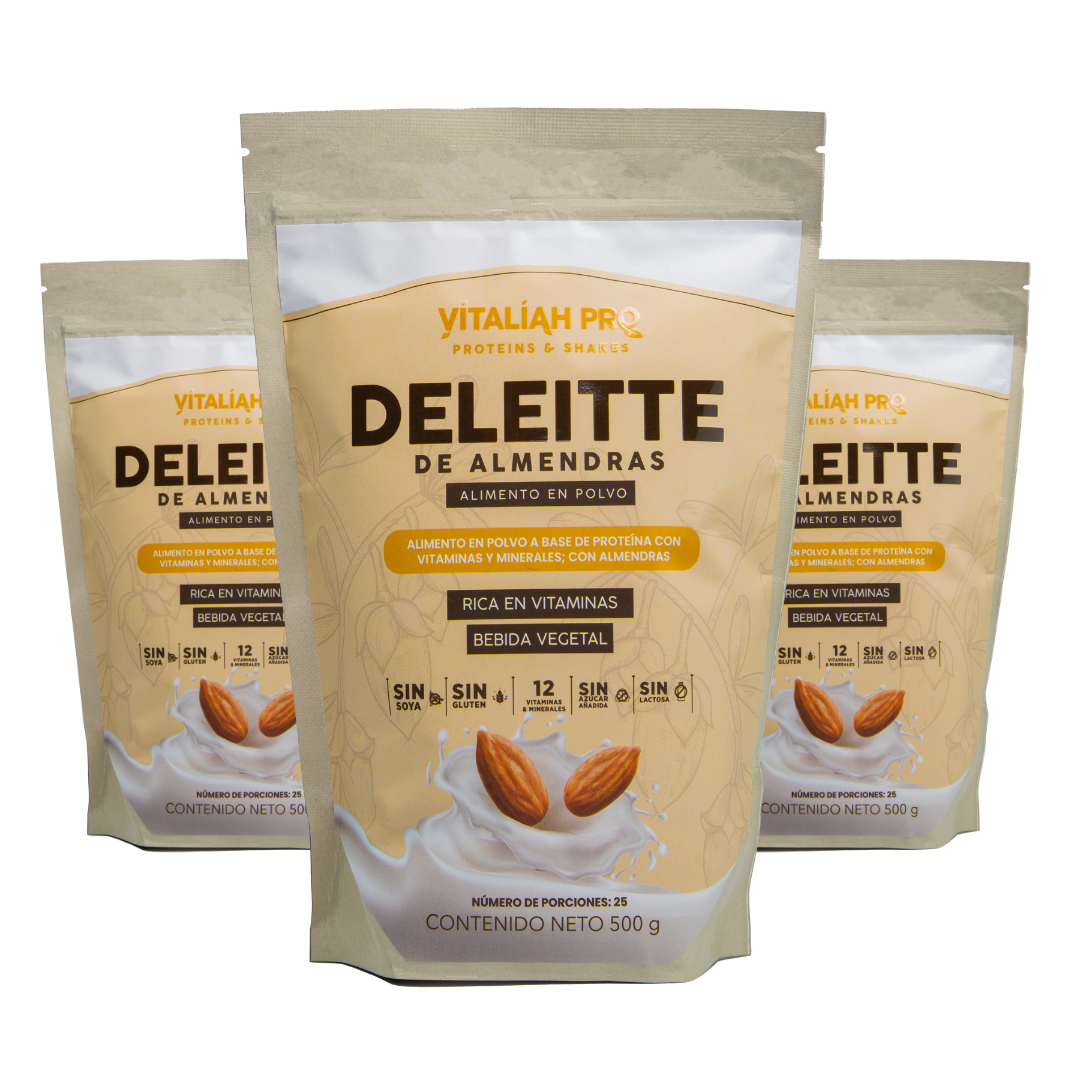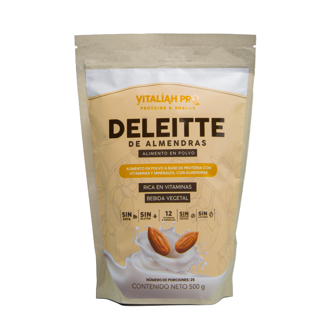 Además, cuenta con sabor artificial a vainilla y almendras, no contiene ni soja ni maltodextrina.